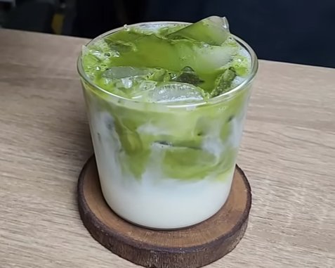 Setelah itu, tuangkan susu dan es batu ke dalam gelas, lalu tambahkan larutan matcha di atasnya perlahan agar terbentuk gradasi hijau yang memanjakan mata persis seperti minuman yang disajikan di kafe ternama.