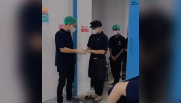 Setiap individu — termasuk relawan — yang ingin masuk ke area dapur harus melewati proses pemeriksaan.