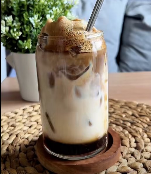 Kopi susu gula aren versi rumahan ini memiliki perpaduan rasa manis alami dari gula aren dan creamy dari susu serta creamer. Rasanya lembut, tidak terlalu pahit, dan menyegarkan saat disajikan dingin.