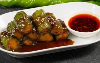 8. Tambahkan potongan daging goreng, siram kecap manis, dan taburi bawang goreng. Sajikan bersama kerupuk emping.