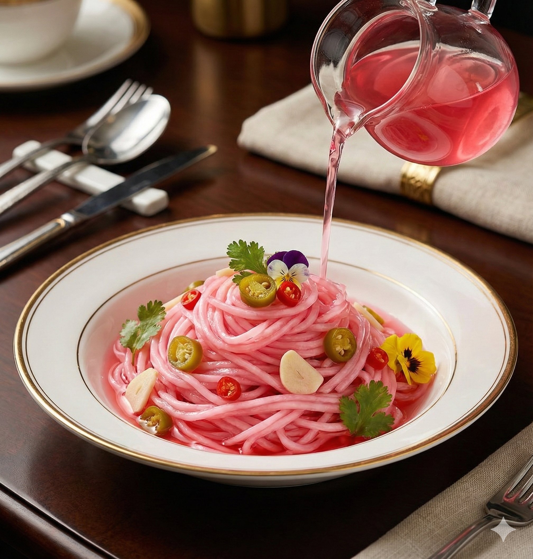 4. Tuang cuka merah fermentasi alami dan Sprite untuk memberikan sensasi segar dan sedikit berkarbonasi.